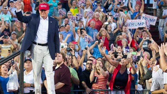 Sebelum Trump tiba, para penggemarnya memiliki beberapa tanda, yang lain mengenakan T-shirt yang mendukung pengusaha miliarder-status orang luarnya di lapangan ramai yang didominasi oleh mantan dan pejabat terpilih saat ini sebagai pembicara lagu “Sweet Home Alabama”.