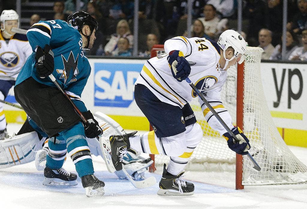 CATATAN: Hiu F Erian Hayes ditugaskan ke AHL Worchester sebelum pertandingan. . Hodgson memiliki lima gol terbaik tim melawan Hiu dalam delapan pertandingan. F Chris Stewart mencetak tiga gol dan tujuh assist dalam 20 pertandingan melawan San Jose. . Burns telah mencetak satu poin di semua kecuali dua pertandingan musim ini.