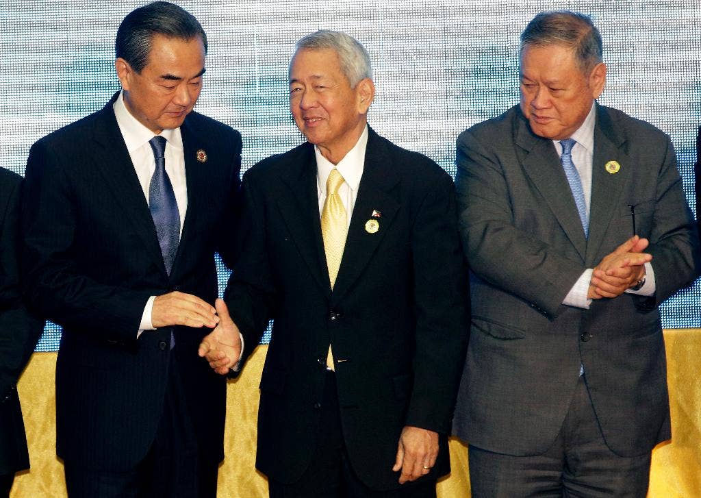 Ketiganya bertemu di Vientiane di sela-sela serangkaian pertemuan yang diselenggarakan Perhimpunan Bangsa-Bangsa Asia Tenggara atau ASEAN. Kelompok ini bisa saja menggunakan keputusan panel arbitrase permanen di Den Haag baru-baru ini, yang memenangkan Filipina dalam kasus yang mereka ajukan melawan Tiongkok dalam perselisihan mereka di Laut Cina Selatan.