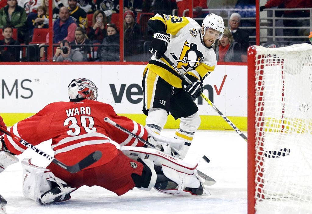 Carolina masuk dengan rekor kandang 14-1-1 sejak itu. Tapi Pittsburgh memenangkan kemenangan kelima berturut-turut melawan Hurricanes, termasuk kedua pertemuan musim ini.